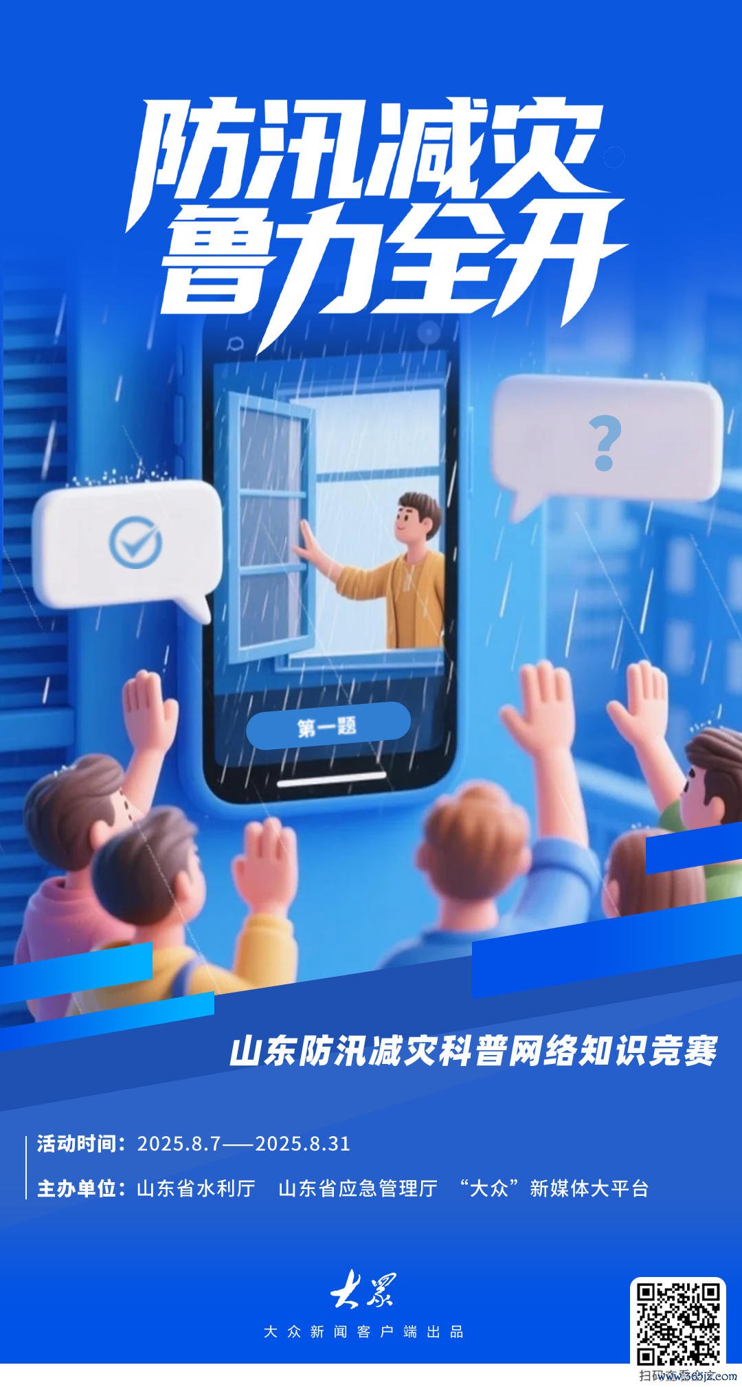 8月7日起,“防汛减灾·鲁力全开”——山东防汛减灾科普网罗知识竞赛崇拜驱动,快来参与答题,测一测你的防汛减灾知识储备吧!